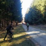 La iesirea din sat parasim asfaltul si pedalam pe ultima parte a traseului nostru. Dupa cativa kilometri prin padure ajungem la prima intersectie. Continuam drumul tot inainte catre mina Viezuroiu.